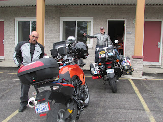On to Madawaski Quebec with Twisty finding the curvy back roads for a good part of the way...sorry no pics to busy trying to stay on the tarmac.....booked into the same hotel we stayed at last fall....again we had to chain the bikes this time with an alarm system...what is it with Quebec. Don had a disappointing dinner here...Twisty and I were finished eating while Don was still waiting.....he had to ask numerous times where is my meal....a complaint to the Manager later scored us six beers...thanks Don.